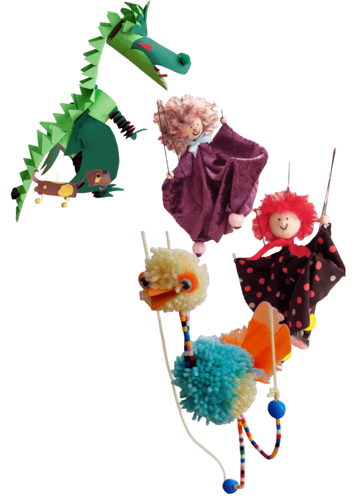 Aan het einde van de workshop leren kinderen de marionet te bespelen. En misschien maken ze zelfs een kleine voorstelling!